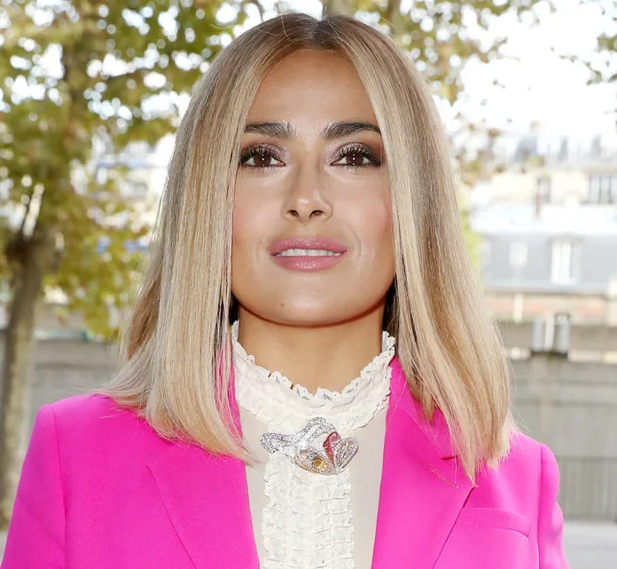Salma Hayek embraces rich, voluminous hair with natural movement.
